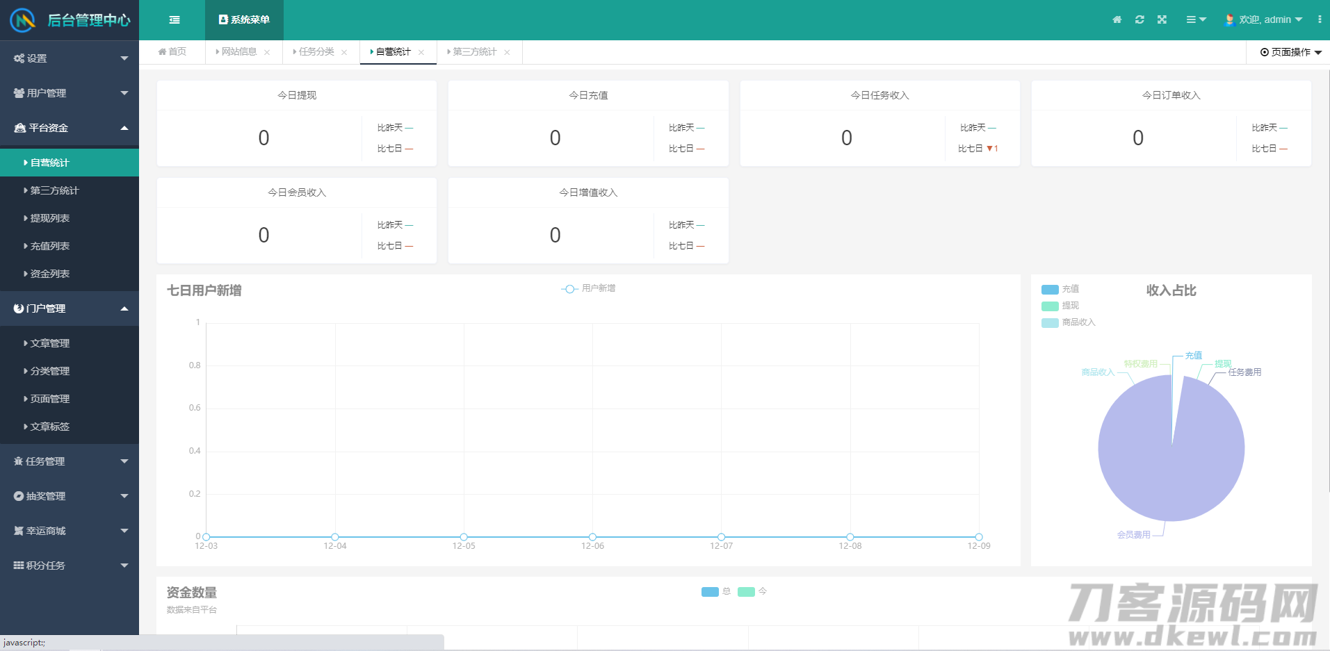 统计相关:包含联盟的财务统计,任务反馈统计。用户财务统计,以及平台数据分析。
